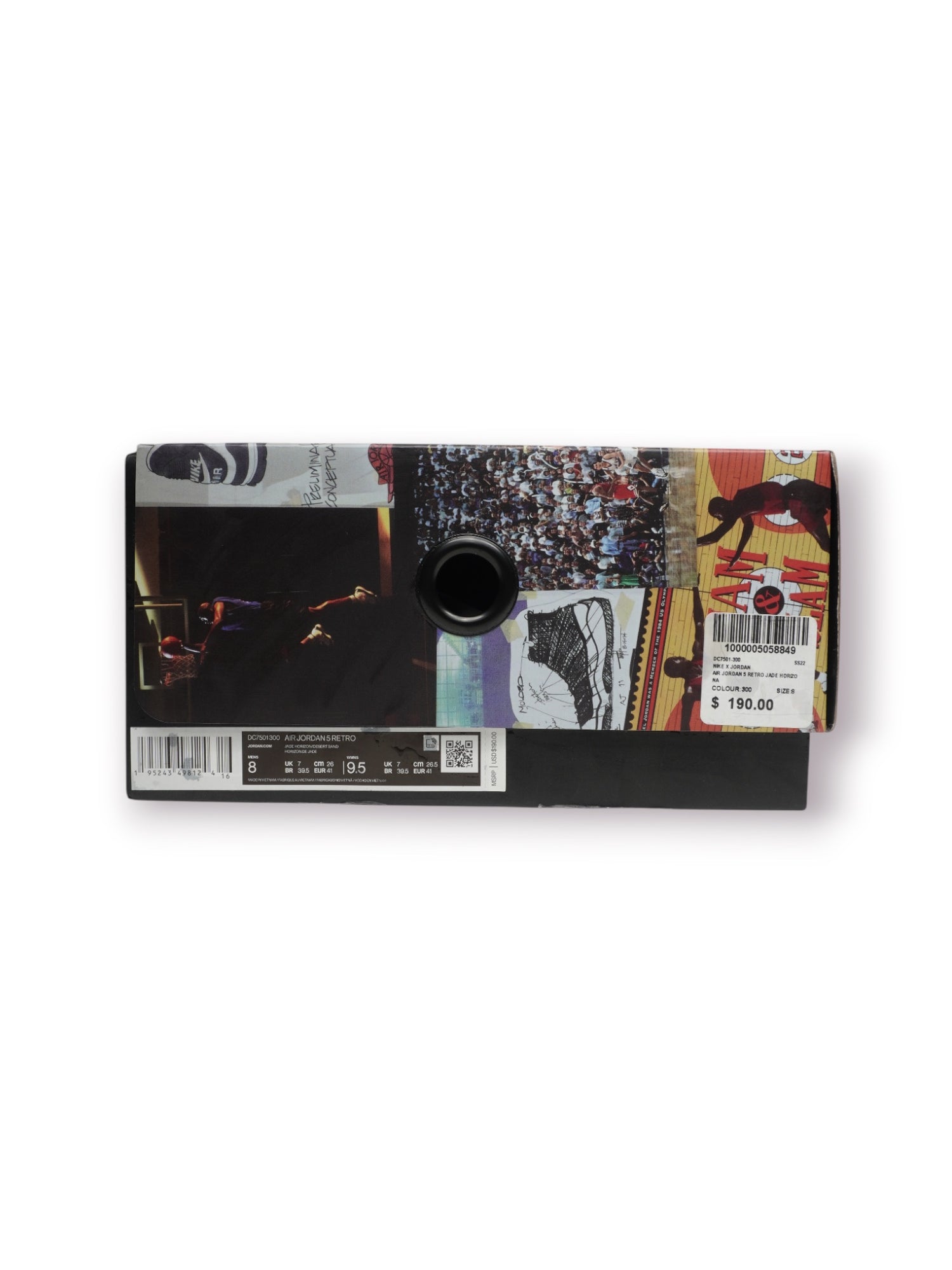 Authentic Jordan 5 'Jade Horizon' in pre-owned condition. This coveted release showcases the classic Air Jordan 5 construction with its distinctive design elements and quality craftsmanship. Ideal for sneaker collectors seeking hard-to-find colorways at accessible pricing. Review condition photos for wear details and authenticity assurance.